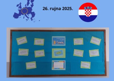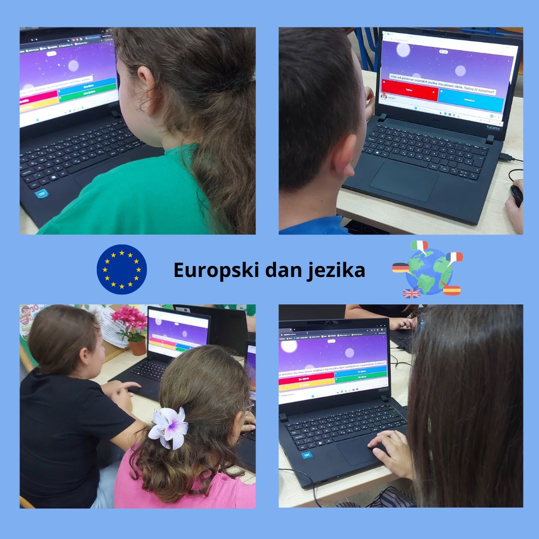 Učenici 5. a razreda su na Literarno-novinarskoj skupini obilježili Europski dan jezika vježbajući jezikolomce na hrvatskom jeziku te se upoznali s jezičnom raznolikošću jezika Europske unije kroz zabavni i edukativni Kahoot! kviz. Kroz kviz su naučili zanimljivosti o jezicima kao što su malteški, estonski i finski te otkrili riječi koje su slične u više europskih jezika.