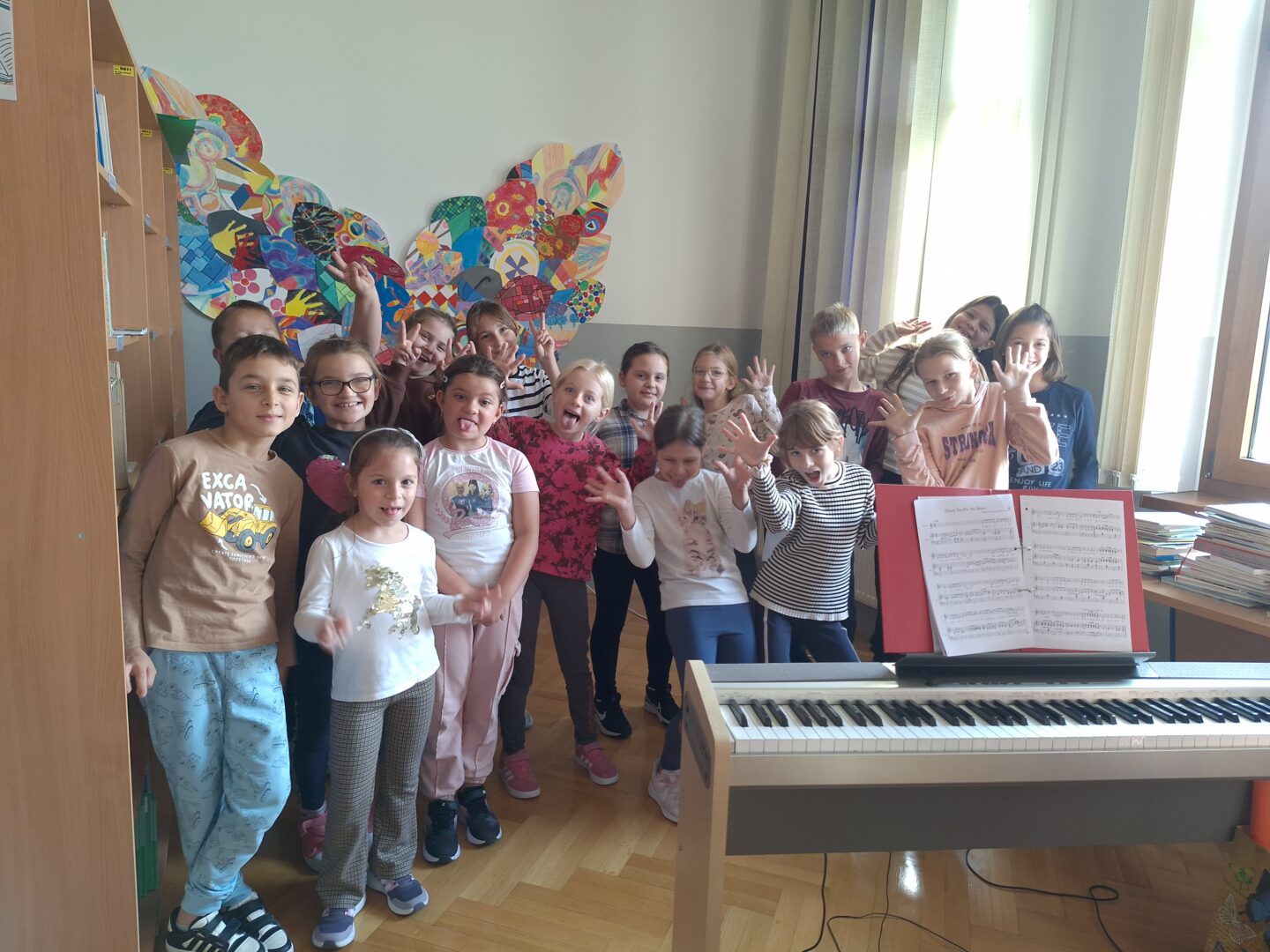 Međunarodni dan glazbe obilježava se svake godine u mjesecu listopad od 1975. godine s ciljem širenja ideala mira i prijateljstva među narodima, razmjena glazbenih i umjetničkih iskustava te uživanje u glazbi. Vrhunac obilježavanja Međunarodnog dana glazbe bio je kada je Školski zbor organizirao „Veliki raspjevani odmor sa školskim zborom“ koji se održao u školskoj knjižnici. Pod vodstvom učiteljice glazbenog Ivane Tuškan zbor je otpjevao tri pjesme: Kalipso, C-dur il` F-dur i Hvala za sve note. U galeriji možete vidjeti djelić atmosfere.