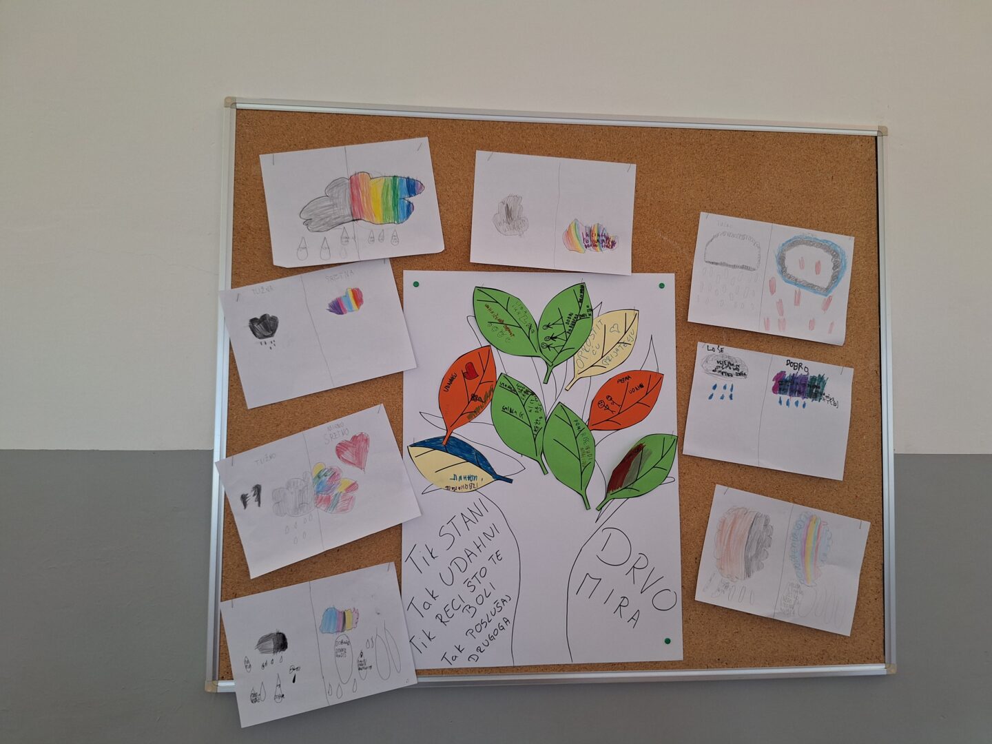 Na kraju radionice, zajedničkim snagama učenici su izradili svoje Razredno drvo mira, koje su ispunili listovima s dobrim porukama, pohvalama i riječima prijateljstva. Time su simbolično pokazali kako svatko od njih može doprinijeti stvaranju mirnijeg, toplijeg i sigurnijeg razrednog ozračja.