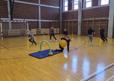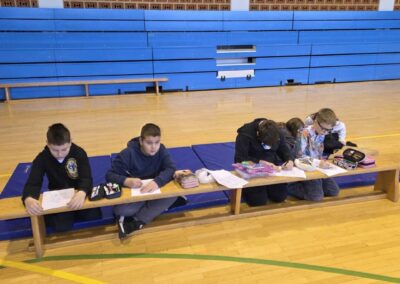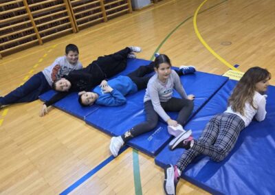 U sportskoj dvorani pripremljena su četiri različita mjesta na koja su djeca u središnjoj aktivnosti bila raspoređena i provodila zadano vrijeme (sportski poligon s rekvizitima i loptama, strunjače za odmor, druženje i izležavanje, kreativni kutak – bojanke i izrada nakita, društvene igre). U pozadini je svirala glazba na zvučniku, a svaki put kad bi učiteljica stišala glazbu na zvučniku, učenici bi zamijenili aktivnost.
