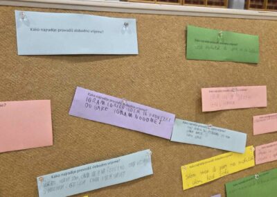 Učenici su kroz razgovor o navikama provođenja slobodnog vremena naveli kako je aktivno provođenje vremena važno za njihovo zdravlje te su primjere provođenja slobodnog vremena stavili na pano.