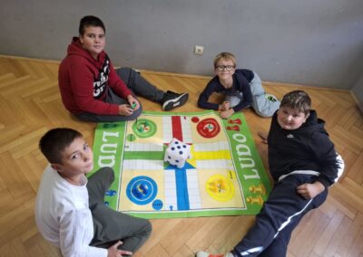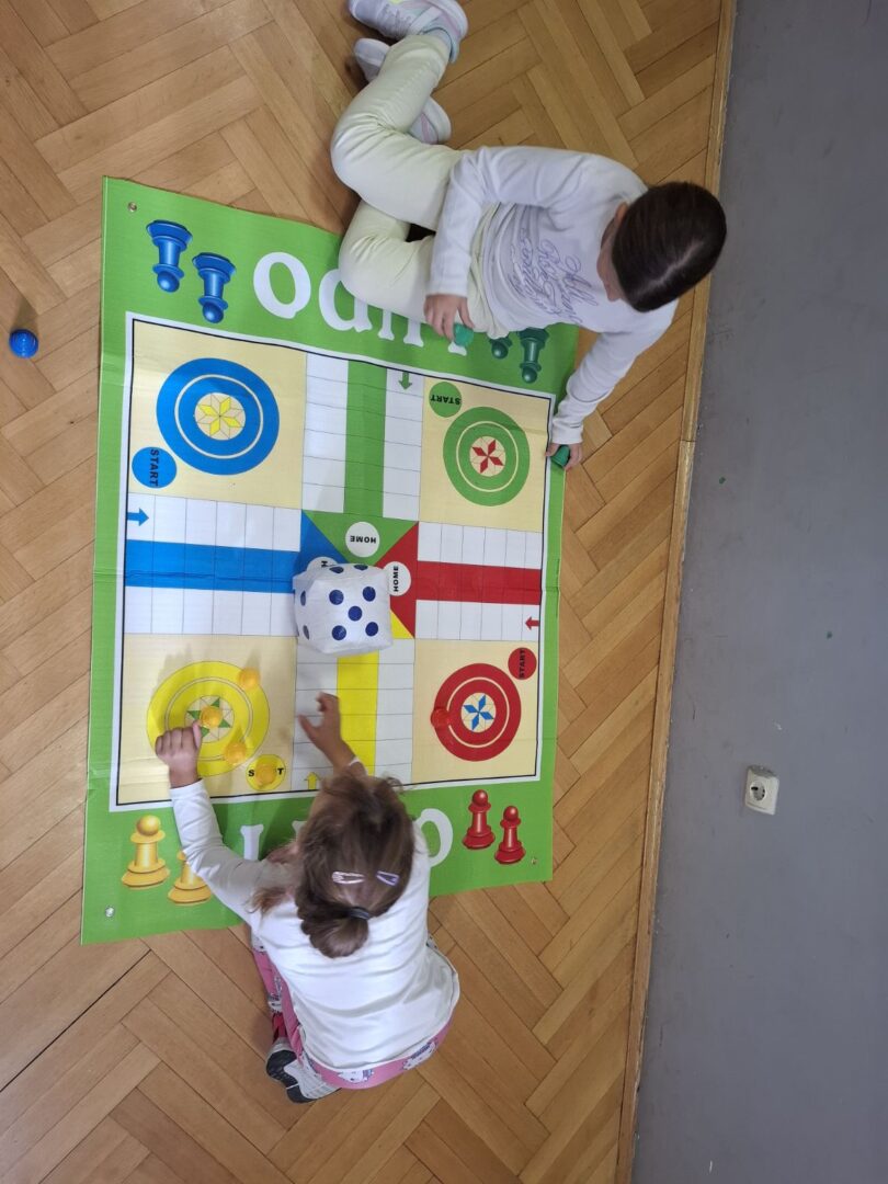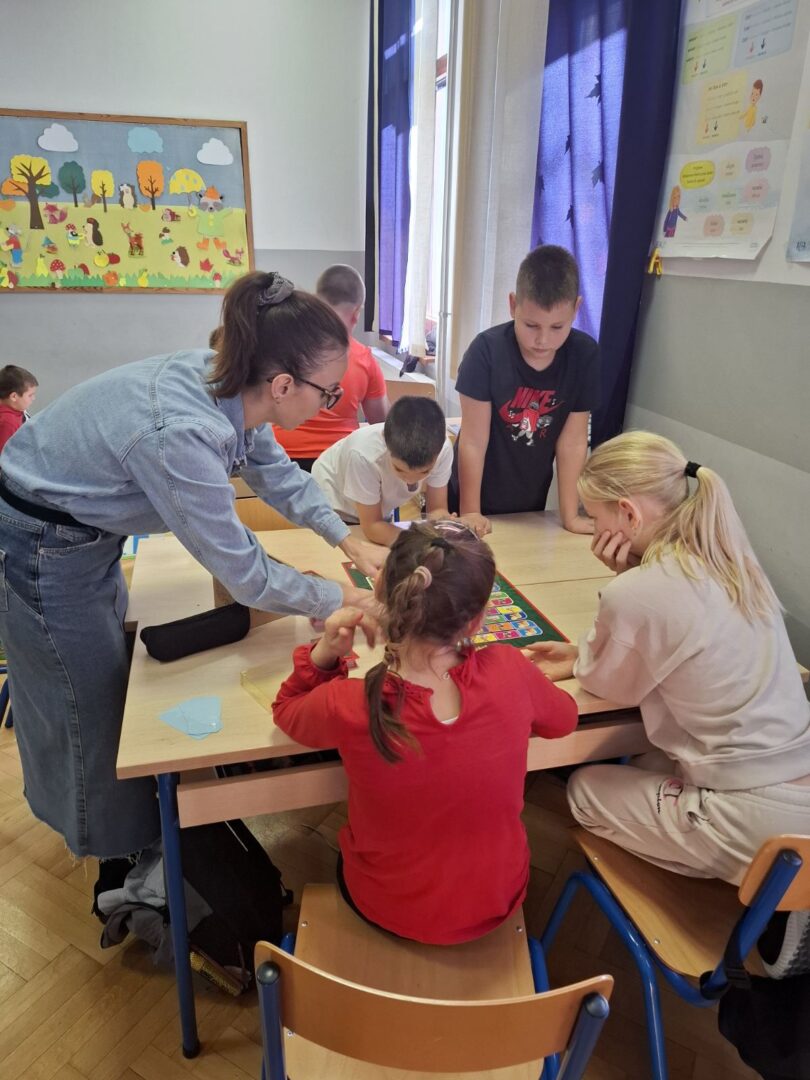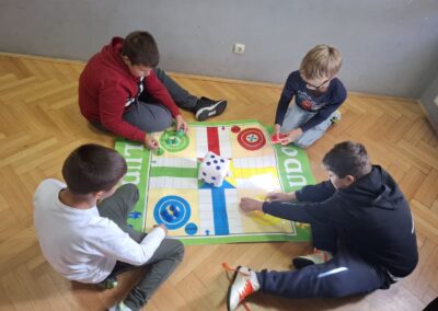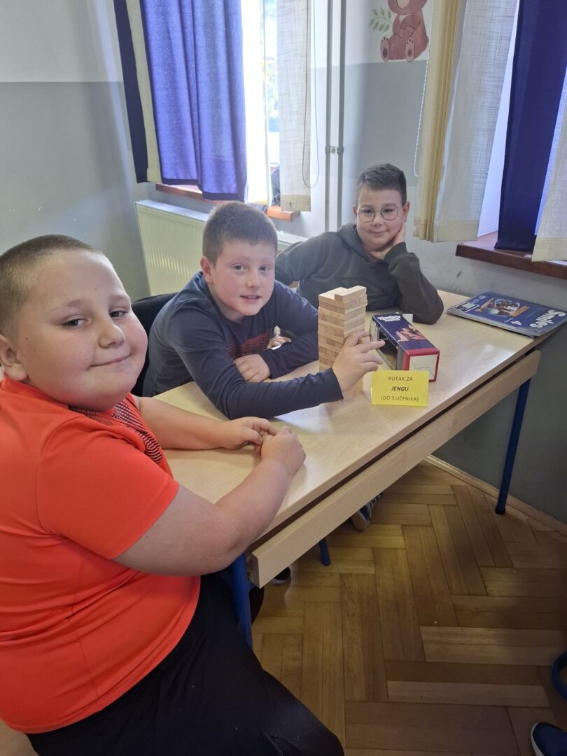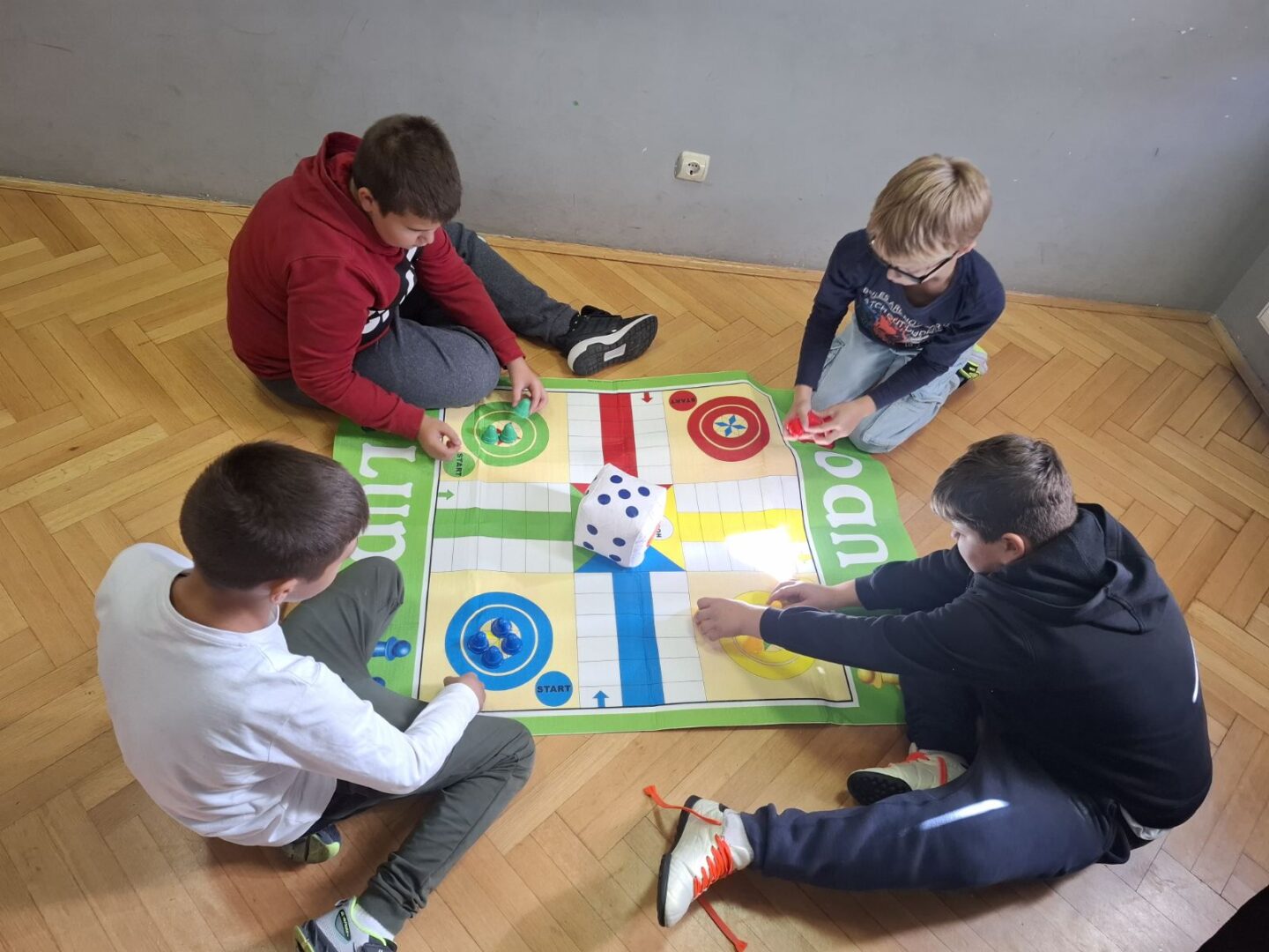 Tijekom prvog susreta 28. listopada 2025., kroz aktivnost „Zreliji kroz igru“, učenici su imali osam kutaka različitih društvenih igara. Osim uvjeta mirne komunikacije i zdravog natjecateljskog duha, učenici su potaknuti da promjenom kutka mijenjaju i suigrače. Izbor kutaka je bio raznolik: kutak za Disney igre, kutak za podni Čovječe ne ljuti se, kutak za Mikado, kutak za Activity, kutak za kulu od karata, kutak za Jengu, kutak za igre u paru (Pogodi tko?, Što se primijenilo?) i kutak za Pričam ti priču. Učenici su se međusobno slagali sa svojim vršnjacima, isprobavali kutke s različitim suigračima i dogovarali se oko strategije igranja. Činilo se da su se izvrsno zabavili te su izrazili da jedva čekaju sljedeće aktivnosti.
