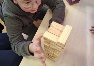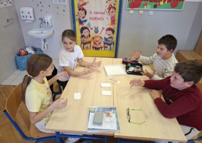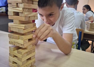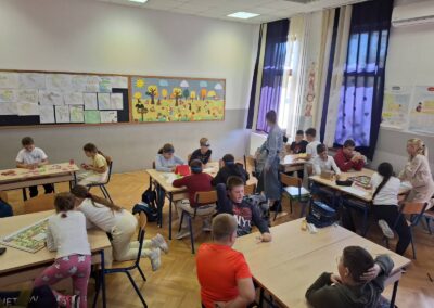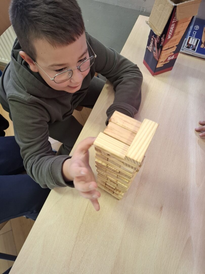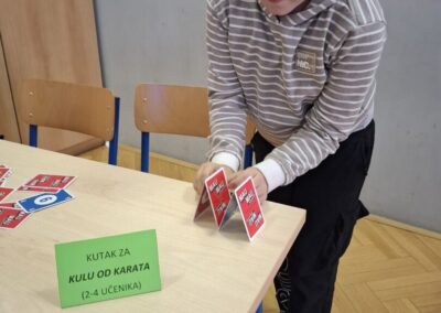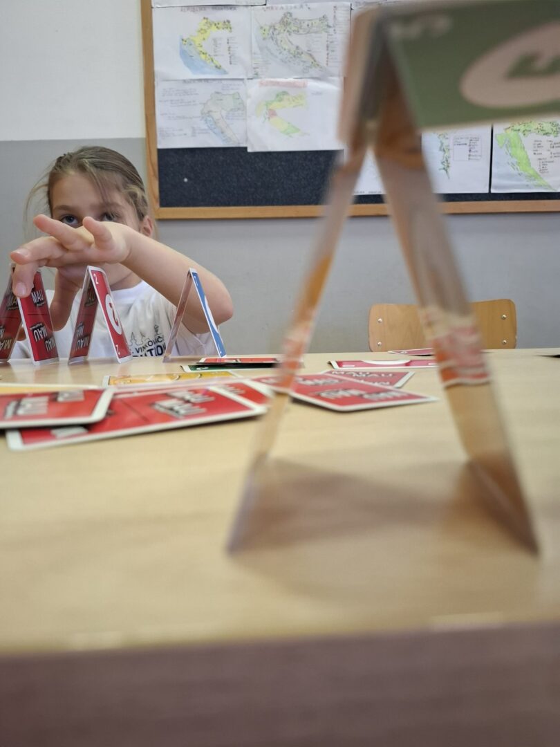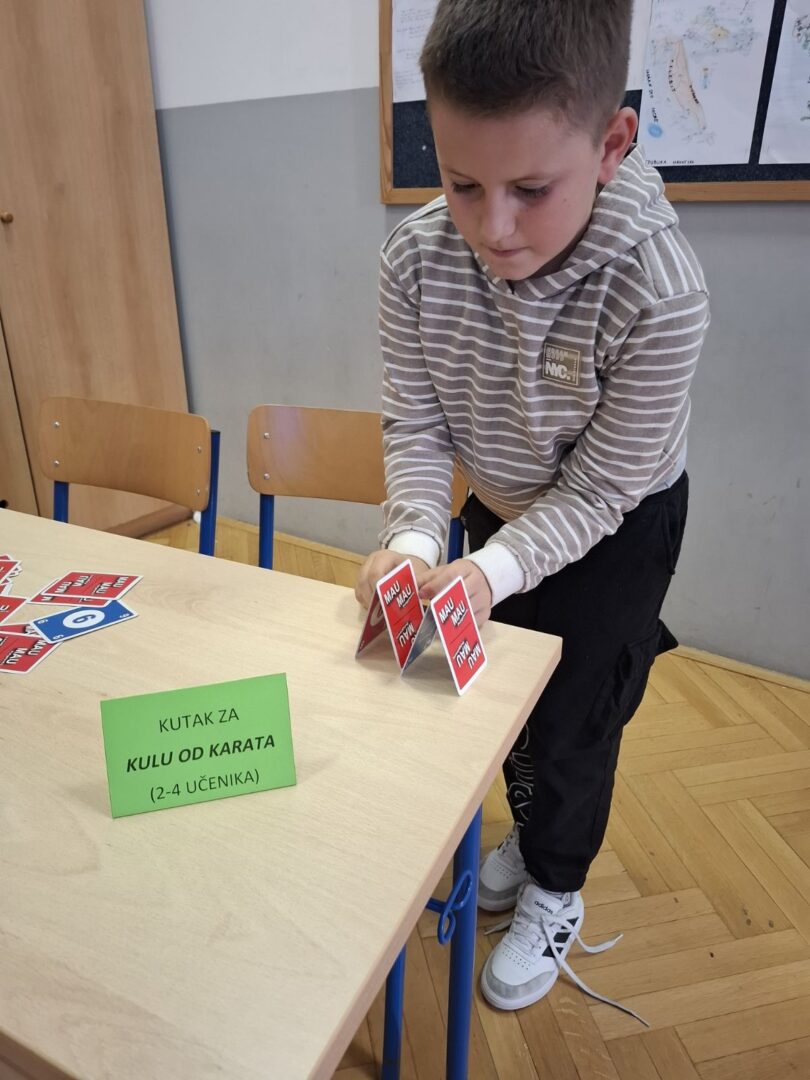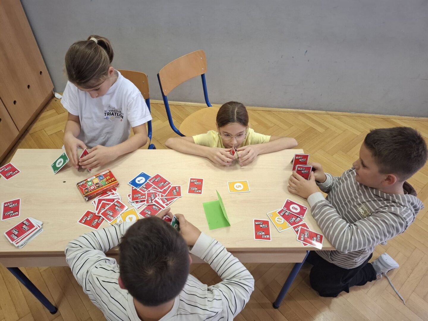 Tijekom prvog susreta 28. listopada 2025., kroz aktivnost „Zreliji kroz igru“, učenici su imali osam kutaka različitih društvenih igara. Osim uvjeta mirne komunikacije i zdravog natjecateljskog duha, učenici su potaknuti da promjenom kutka mijenjaju i suigrače. Izbor kutaka je bio raznolik: kutak za Disney igre, kutak za podni Čovječe ne ljuti se, kutak za Mikado, kutak za Activity, kutak za kulu od karata, kutak za Jengu, kutak za igre u paru (Pogodi tko?, Što se primijenilo?) i kutak za Pričam ti priču. Učenici su se međusobno slagali sa svojim vršnjacima, isprobavali kutke s različitim suigračima i dogovarali se oko strategije igranja. Činilo se da su se izvrsno zabavili te su izrazili da jedva čekaju sljedeće aktivnosti.