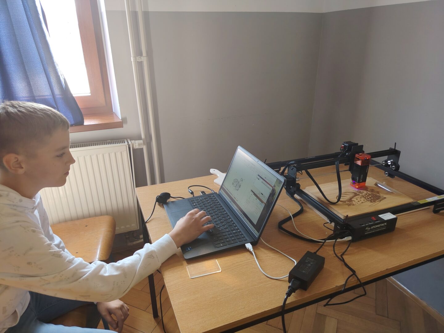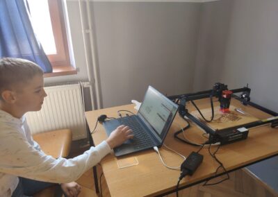 Nakon što su na prethodnoj radionici upoznali rad laserskog rezača i osnovna sigurnosna pravila, današnji je susret bio usmjeren na učenje rada u programu za lasersko rezanje i graviranje. Učenici su se upoznali s osnovama digitalnog crtanja i pripreme nacrta, kako oblik pretvoriti u digitalni zapis koji stroj može „pročitati“.
