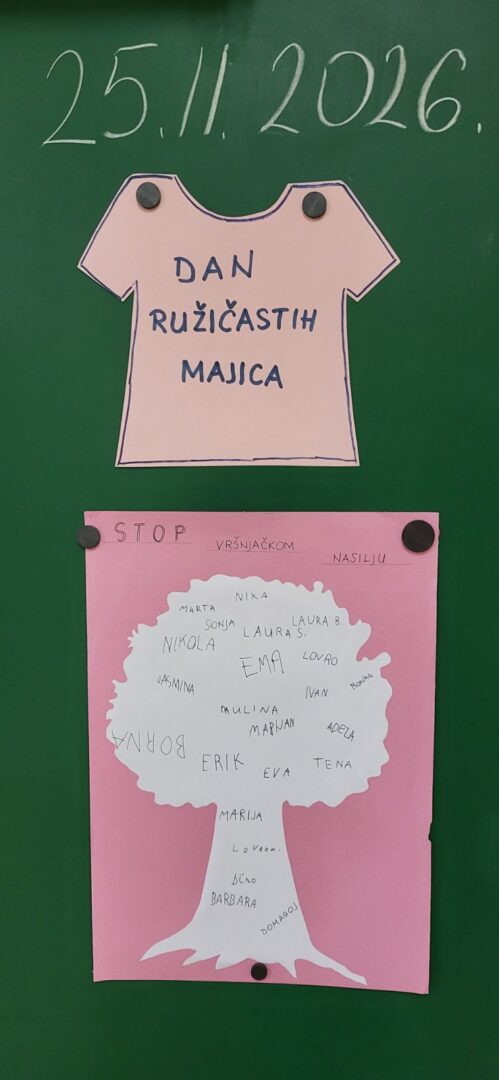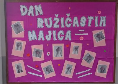 Uoči Dan ružičastih majica, odnosno Nacionalnog dana borbe protiv vršnjačkog nasilja, koji se u Hrvatskoj obilježava posljednje srijede u veljači, u školi su provedene aktivnosti s ciljem promicanja tolerancije, prijateljstva i nenasilja. Ovaj je dan u Republici Hrvatskoj službeno potvrđen jednoglasnom odlukom Hrvatski sabor 17. veljače 2017. godine, a ideju i realizaciju pokrenuo je Centar za edukaciju i prevenciju nasilja.