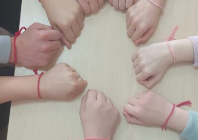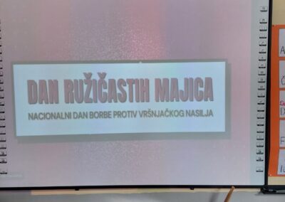 Učenici 6. a i 7. b razreda pokazali su svoju kreativnost izrađujući narukvice prijateljstva u ružičastim nijansama. Narukvice će nositi povodom obilježavanja Dana ružičastih majica ili ih pokloniti prijateljima kao znak podrške i zajedništva u borbi protiv vršnjačkog nasilja.