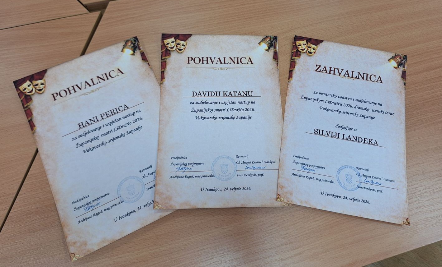 Njihovi nastupi bili su dojmljivi i kreativni, stoga ih je i prepoznalo Prosudbeno povjerenstvo međuopćinske smotre te uputilo dvoje naših učenika na županijsku razinu Smotre.